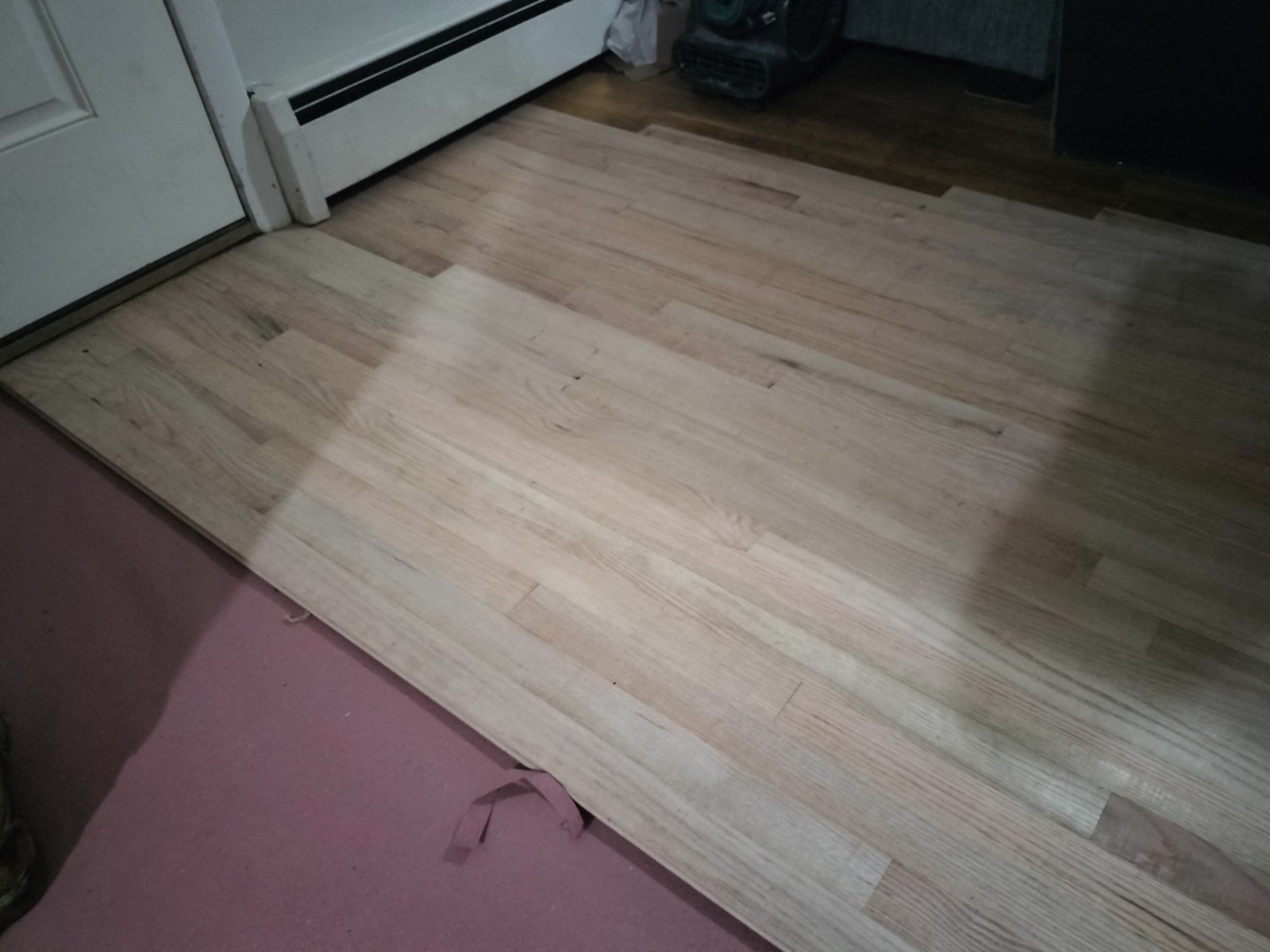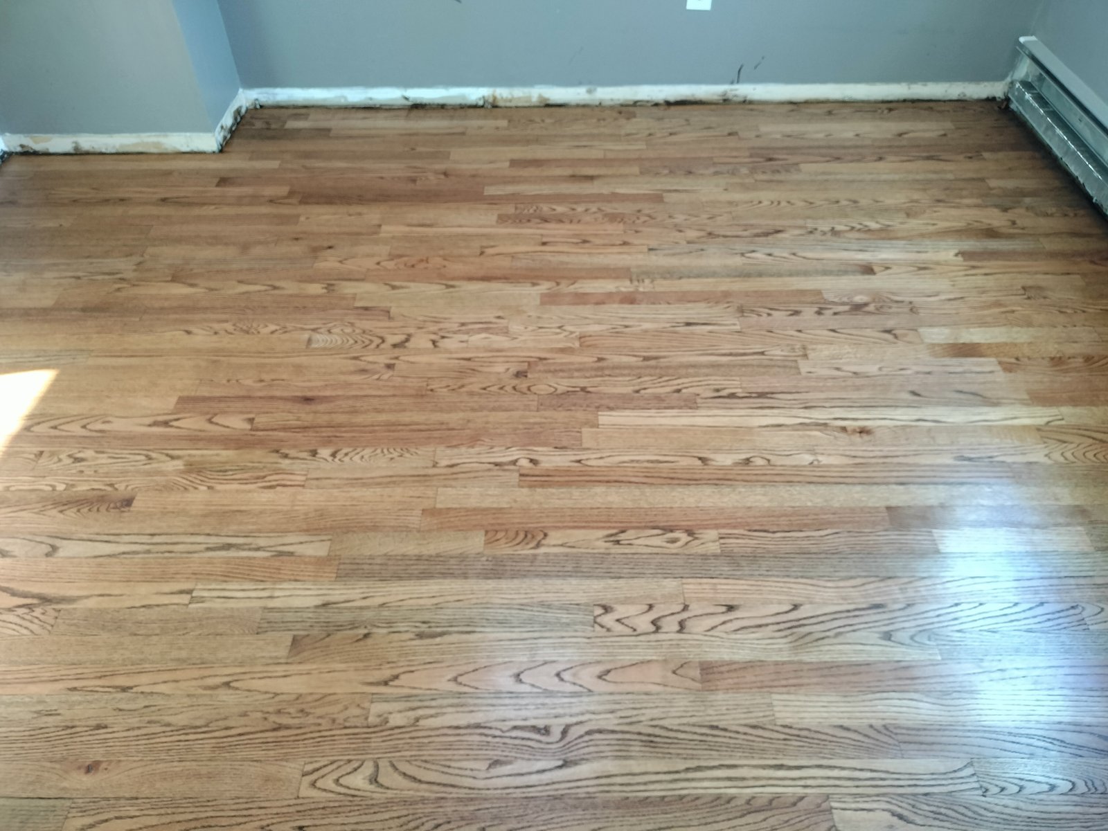 This project like any other presented it's own challenges. Challenge A was that the homeowner had a large vintage piano to protect that was very heavy and could not be moved out of the living room. Challenge B was that the home needed to be worked on while occupied. We solved challenge A by staining and finishing one side of the living room and then another and moving the piano accordingly. We solved challenge B by creating a 3 layer wall of thick plastic between the lived in space and the workspace. We also created negative airspace and sufficient ventilation by using fans, that way the occupants were kept completely safe during the process of using these stains and allowing them to cure.